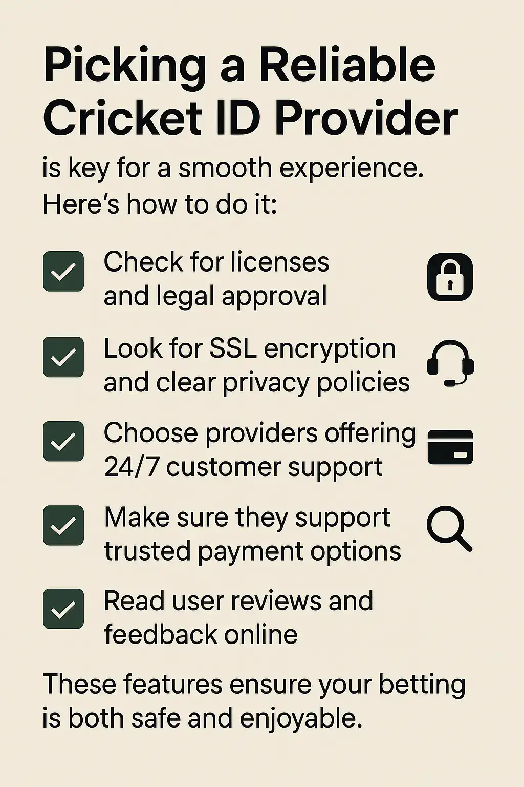 Picking a reliable cricket ID provider is key for a smooth experience. Here’s how to do it: